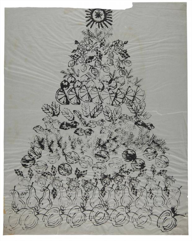 SLIKA 3: BOŽIĆNO DRVO: mastilo, tempera i kolaž na papiru, naslikano oko 1958.