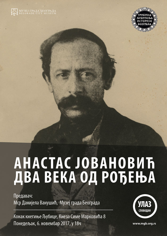 Predavanje na temu „Anastas Jovanović dva veka od rođenja“ održaće se sutra, 6. novembra, u 18h u Konaku kneginje Ljubice u Beogradu.