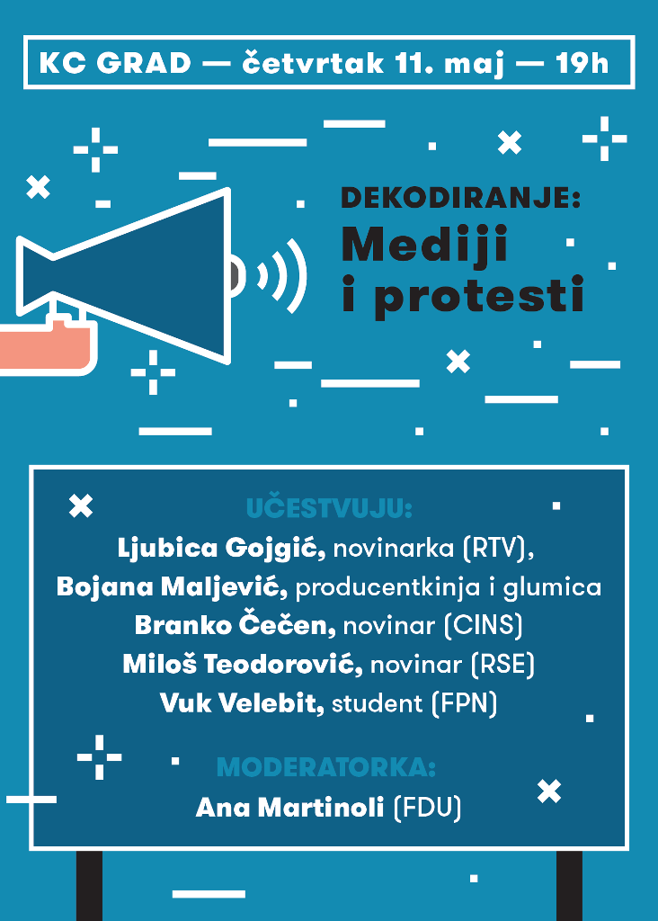 Debata „Dekodiranje: Mediji i protesti“ održaće se 11. maja u 19h u KC Grad u Beogradu.