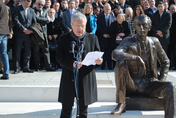 Velikić je rekao i da „grad apsurda i paradoksa diše u Pekićevim knjigama. Borislav Pekić, baš kao Tesla, Pupin, Milanković i Andrić, naš je putokaz ka idealu oličenom u duhu Evrope. I zato se nadam da se ovo obeležje neće pretvoriti u oltar klanjanja i mrmljanja opštih mantri, već će služiti kao spomen nepokolebljive individualnosti i slobodne misli, uz mrvicu ironije i samoironije, što su osvedočene vrednosti Borislava Pekića.“