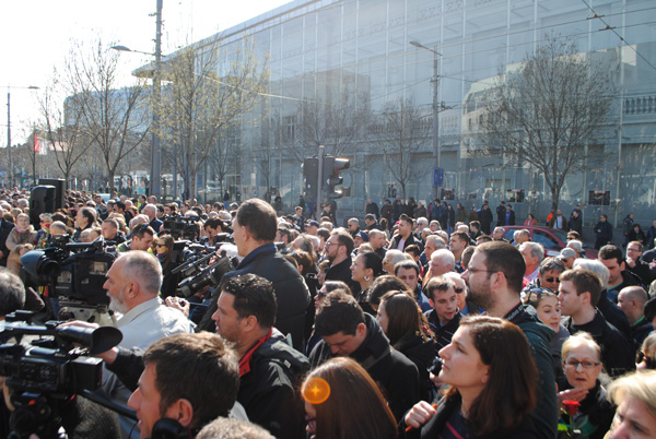 „Pekić nam je ostavio proganjajući osećaj duga prema sopstvenoj zemlji, i nevažno je ko mu podiže spomenik, već da mu pokažemo šta smo i koliko smo od njega naučili“, rekao je premijer Srbije Aleksandar Vučić i zahvalio Ljiljani Pekić na hrabrosti i istrajnosti, istakavši da je lično ponosan što prisustvuje otkrivanju spomenika, kao i da je to za njega velika čast.