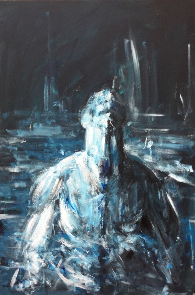 Konkretno ovom serijom slika – život jednog sportiste, odnosno vaterpoliste. Njegovo odrastanje, od dečačkih dana do zrelog čoveka. Da prikažem kroz šta sve jedan sportista mora da prođe da bi postigao vrhunski rezultat. Ljudi koji se sportom ne bave profesionalno, ne znaju kako izgleda takav život i koja su odricanja. Vide samo uspehe i rezultate, a nisu svesni šta je sve tome prethodilo. Misle da je sport neozbiljna aktivnost. Postoji veliki broj sportista koji su samo za nijansu ispod najboljih, a niko neće čuti za njih. Primetićete da moje slike nisu veselih boja baš zbog toga što pokušavam da prikažem njihovu patnju.