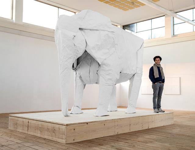 SLON OD PAPIRA U PRIRODNOJ VELIČINI – Umetnik je koristio samo jedan papir, dimenzija 15×15 metara. (Foto: Facebook.com)