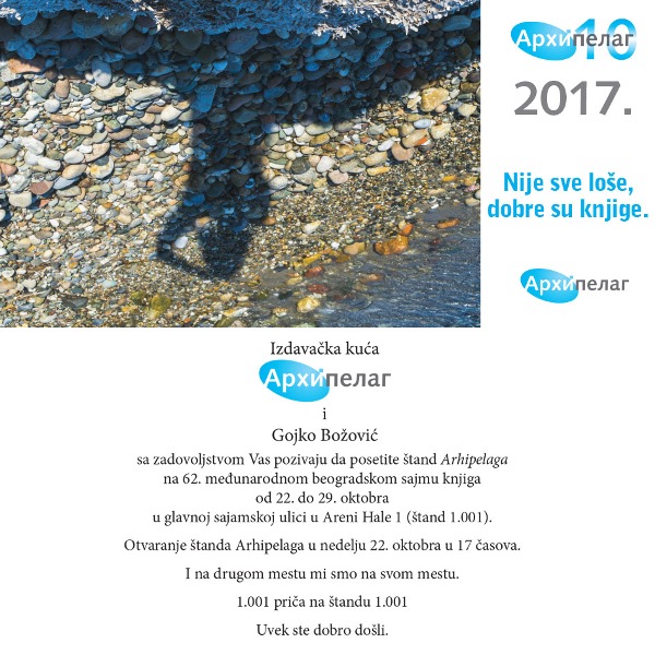 Arhipelag je u 2017, u kojoj obeležava deset godina, između dva Beogradska sajma knjiga, objavio pedeset pet novih i obnovljenih izdanja, pokrenuo dve nove edicije, organizovao novo izdanje Beogradskog festivala evropske književnosti, kao i gostovanja i srpske turneje nekoliko velikih svetskih pisaca među kojima su Čarls Simić i Klaudio Magris. Knjige Arhipelaga dobile su više domaćih i međunarodnih književnih nagrada, među kojima su međunarodna književna nagrada „Man Buker“ za roman Davida Grosmana Konj ulazi u bar, Evropska nagrada za književnost za roman Darka Tuševljakovića Jaz i Andrićena nagrada za najbolju knjigu priča za Raščarani svet Jelene Lengold. Arhipelag je u ovoj godini objavio novo i kapitalno važno istraživanje mladog istoričara Miloša Bruna Beograd u Velikom ratu: očima savremenika, uzbudljivu priču o svakodnevnom životu u Beogradu tokom Prvog svetskog rata datu kroz svedočenja savremenika, memoare, pisma i dnevnike, književne tesktove i ondašnje novine.