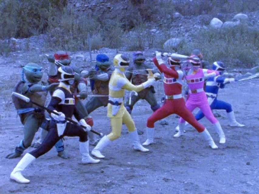 5. Moćni rendžeri i Nindža kornjače u istoj epizodi. Većina dece 90-ih su uporedo pratila ove dve serije. U „Moćni rendžeri u svemiru“, u epizodi iz 1998. godine, Nindža kornjače, pod dejstvom Astronemine zle vradžbine, dolaze da se bore za rendžerima. Ali, tokom epizode se udruže sa rendžerima.