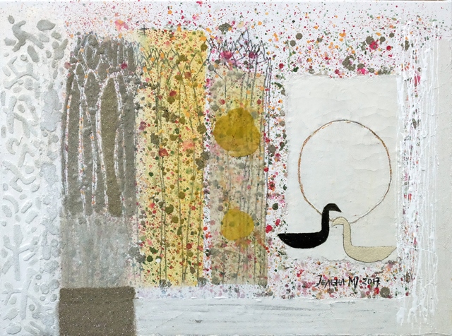 Jelenini svetovi imaju širinu i dubinu, razigranost njenog uma se oslikava na njenim platnima. Njena putovanja, druženja sa drugim kulturama i susreti sa ljudima su njena večita inspiracija. Nebeske visine i morske dubine, a pre svega poniranje u najdublje kutke njene svesti i intime su pred publikom BELEF-a. Na njenim platnima su duhovnici u dubokim molitvama, hramovi u nestajanju, nebeska crkva, antropomorfna bića u potrazi za ljubavlju. U dubokoj zapitanosti čemu težimo i gde idemo, Jelena Milošević Jovanović u fokus stavlja jezgro, kao preteču svega, kao oko svevideće, kao mudrost sveta. Njen vitez na konju se bori protiv aždaha kojima obiluje ovaj svet.