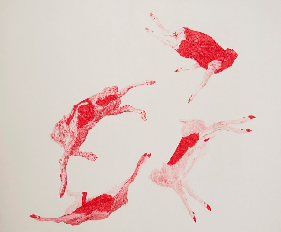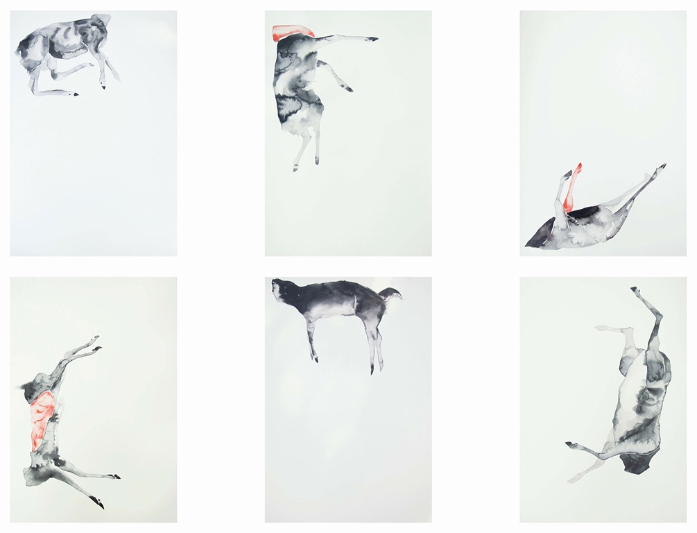 Vrzino kolo, poliptih iz serije Nepoznati, tuš i akvarel na papiru, 6x 59,4 x 42 cm, 2017.