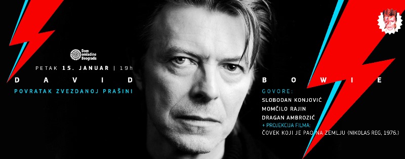 Razgovor o nedavno preminulom pevaču Dejvidu Bouviju, kao i projekcija filma „Čovek koji je pao na zemlju“ Nikolasa Rega, održaće se u petak 15. januara u 19h u Velikoj sali Doma omladine Beograda.