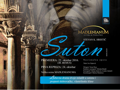 Premijera nacionalne opera „Suton”, kompozitora Stevana Hristića, u režiji Nebojše Bradića i pod dirigentskom palicom Vesne Šouc, biće održana 22. oktobra na Velikoj sceni Madlenianuma.