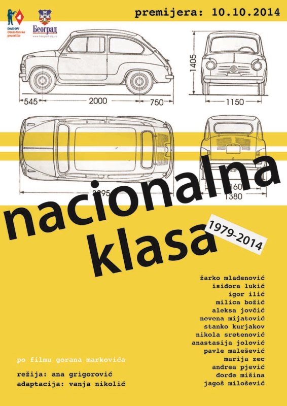 Premijera predstave „Nacionalna klasa“ po filmu Gorana Markovića, a u režiji Ane Grigorović, održaće se 10. oktobra, s početkom u 20 časova, u pozorištu DADOV u Beogradu.