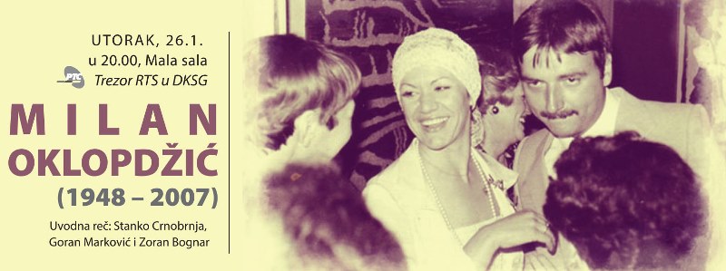 Prema saopštenju DKSG, u okviru programa TREZOR RTS u DKSG o Milanu Oklopdžiću govoriće Goran Marković, Stanko Crnobrnja i Zvonko Bognar. Nakon toga biće prikazana epizoda „Luv“ serije NE TAKO DAVNO. Serija nas vraća u 1963, u popularnu beogradsku diskoteku Euridika. Nostalgična priča o prvim ljubavima, snovima, muzici i školi. Glavni junaci su petorica mladića koji osnivaju rok sastav. Serija je sadržala šest epizoda, od kojih prva nije sačuvana.