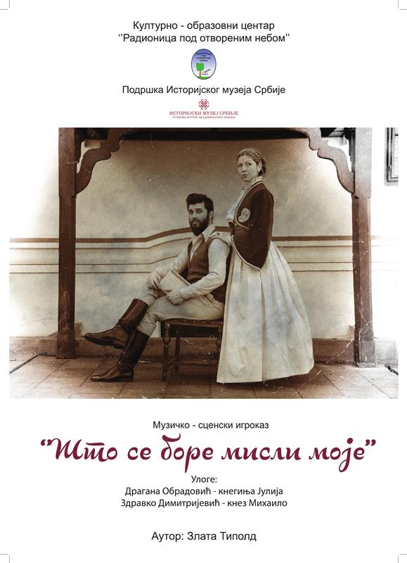 Prema saopštenju organizatora, posetioci će pored obilaska aktuelnih postavki u Konaku kneza Miloša, imati priliku da pogledaju i ovaj interesantan pozorišni komad i da se tako upoznaju sa delom života kneza Mihaila i kneginje Julije, oživljenih snagom dramskog prikaza u izvođenju glumaca Dragane Obradović i Zdravka Dimitrijevića.